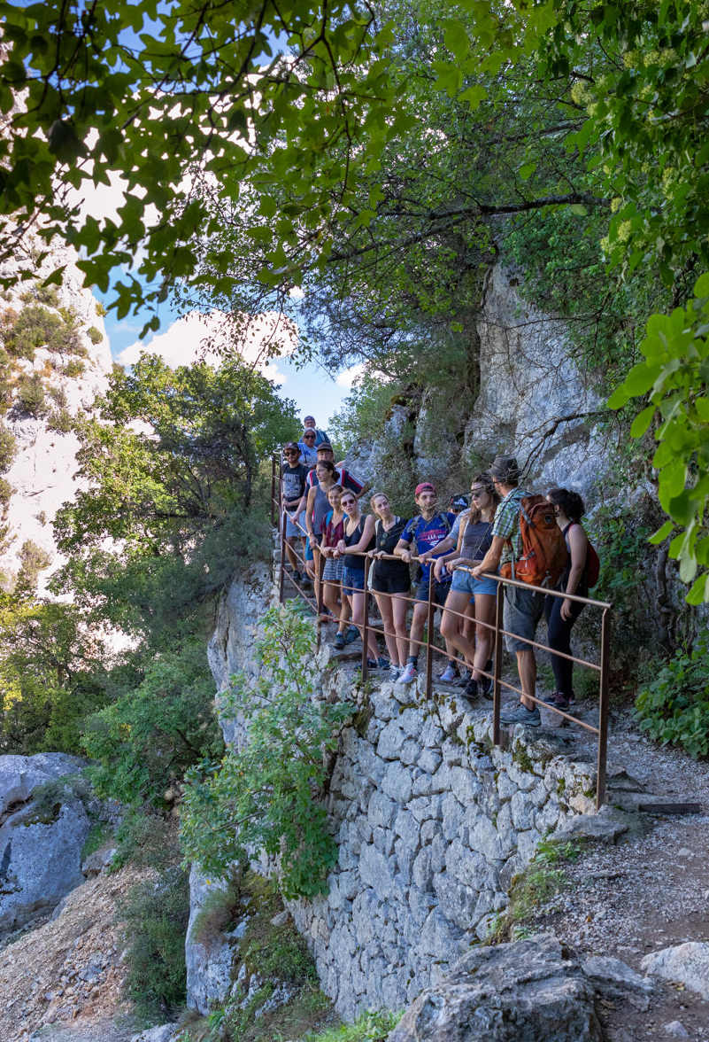 Les courses d’orientation par équipe dans les lacs et canyons du Verdon : type triathlon VTT / canoë / randonnée dans le canyon de Baudinard avec un point de rencontre des équipes en lice au cœur du canyon.